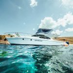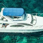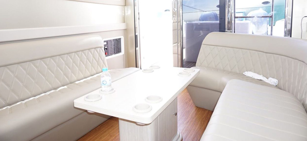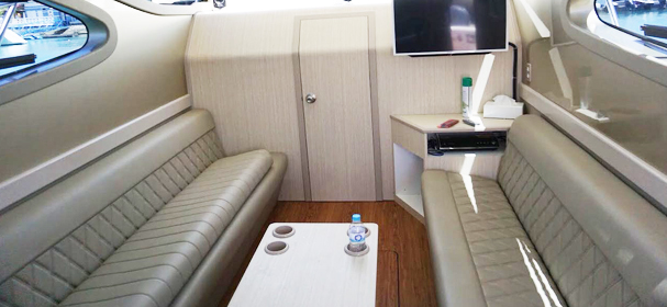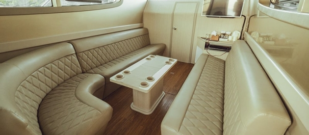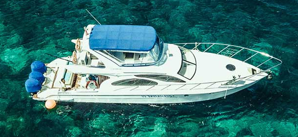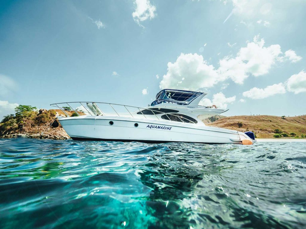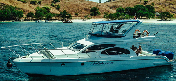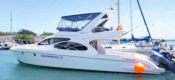 Aquamarine is a 65 foot luxury motor cruiser with well appointed leather interior and high quality TV and audio facilties as well as excellent quality fishing gear and snorkeling equipment. 750HP of engine power enables this large speed boat to get across to the islands of Nusa Lembognan and Penida in just 40 minutes. Spacious upstairs and cockpit area enables a 14 passenger capacity.