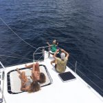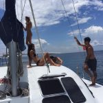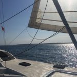This 11.5m performance catamaran is a very popular choice for day trips and sunset cruises alike. She was designed by Mark Pescott to be both fast and luxurious with separate cabins for guests, one with an ensuite. She performs very well under sail, regularly doing speeds of 10-15 knots but also has 2x21HP diesel engines to reliably get you where you want to go in the days without favourable winds.