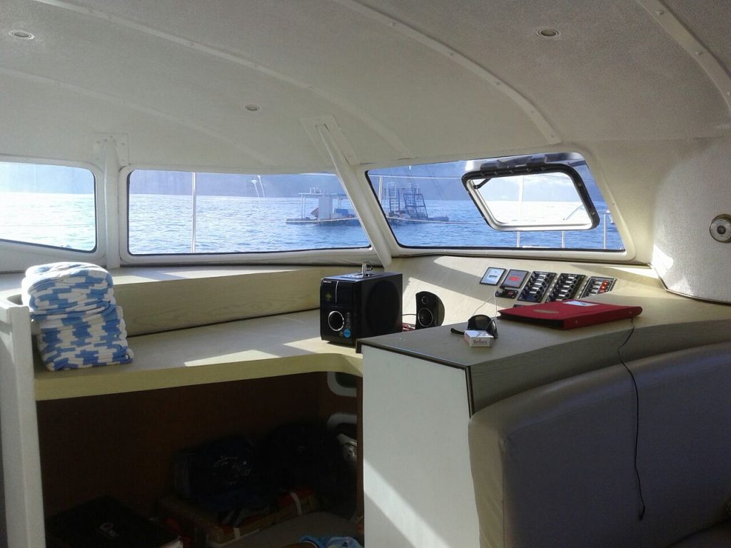 Sri Shakti is a 15m long 8m wide catamaran with a capacity of up to 20 passengers. A solid twin hull design promotes stability and a comfortable cruising speed of up to 10 knots
